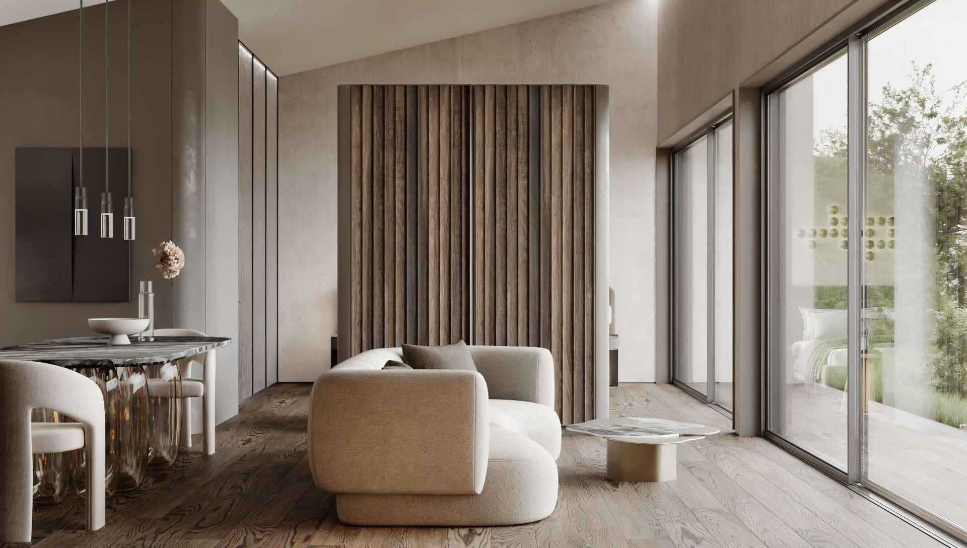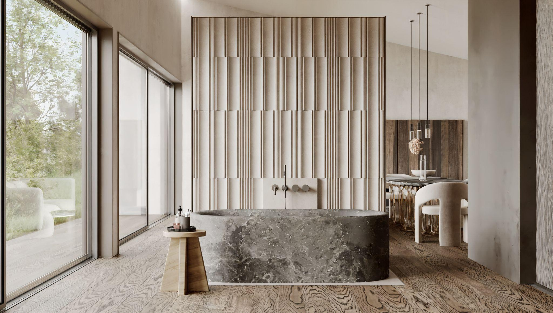 Ключевая идея — погружение человека в природную среду, стирание между ними границ и возможность взглянуть на природу изнутри.Основная идея проекта — диффузия как смешивание элементов. Проект посвящен архитектуре, помещенной в контекст природы, и их органичному соединению. Отель расположен недалеко от Веруккио (Италия) на склоне холма с видом на Средиземное море.