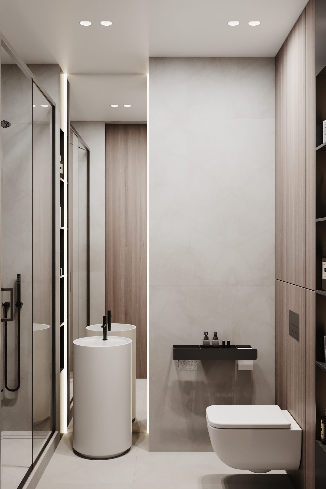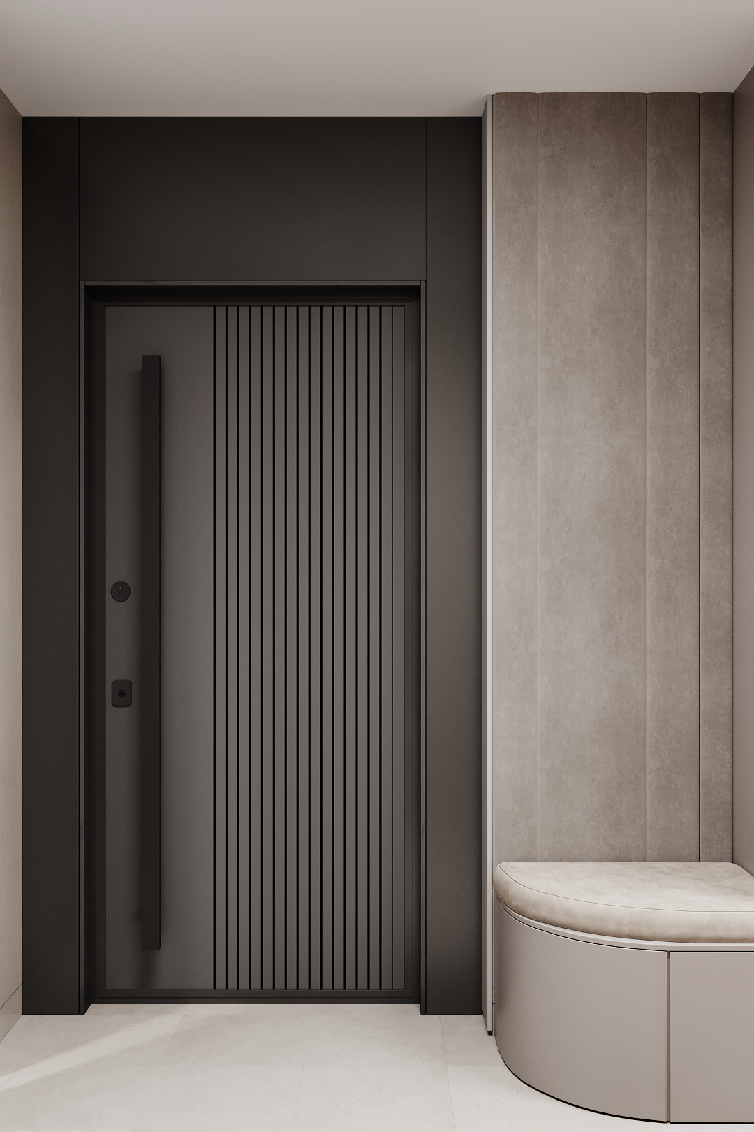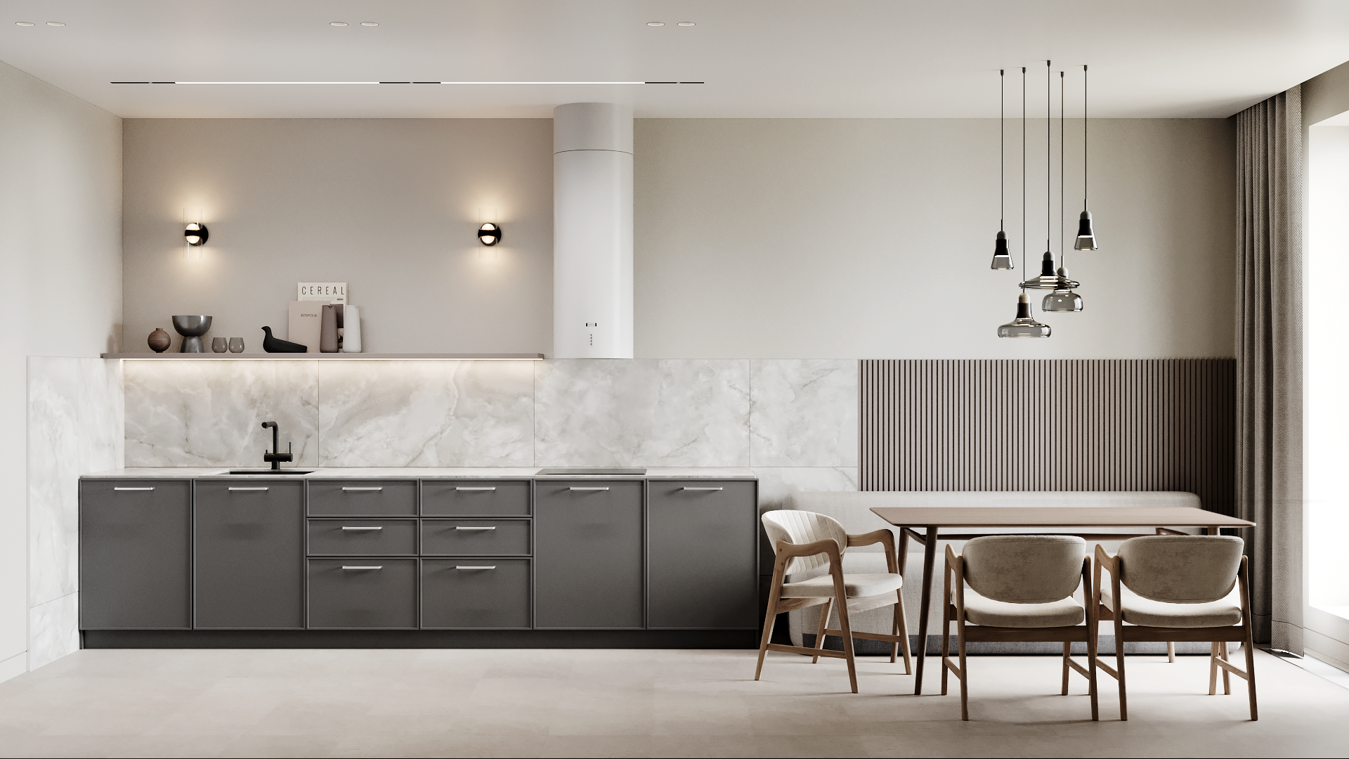 Современный минималистичный интерьер с акцентом на архитектурность решений, функциональность и монохромную цветовую гамму