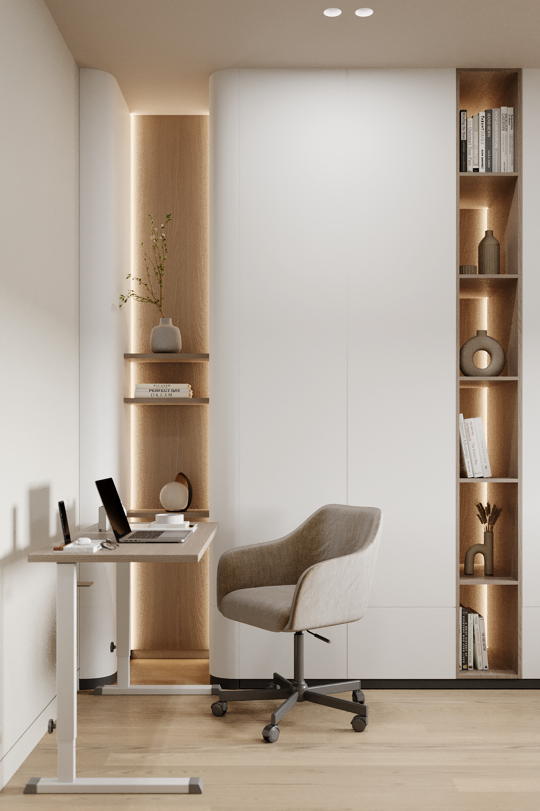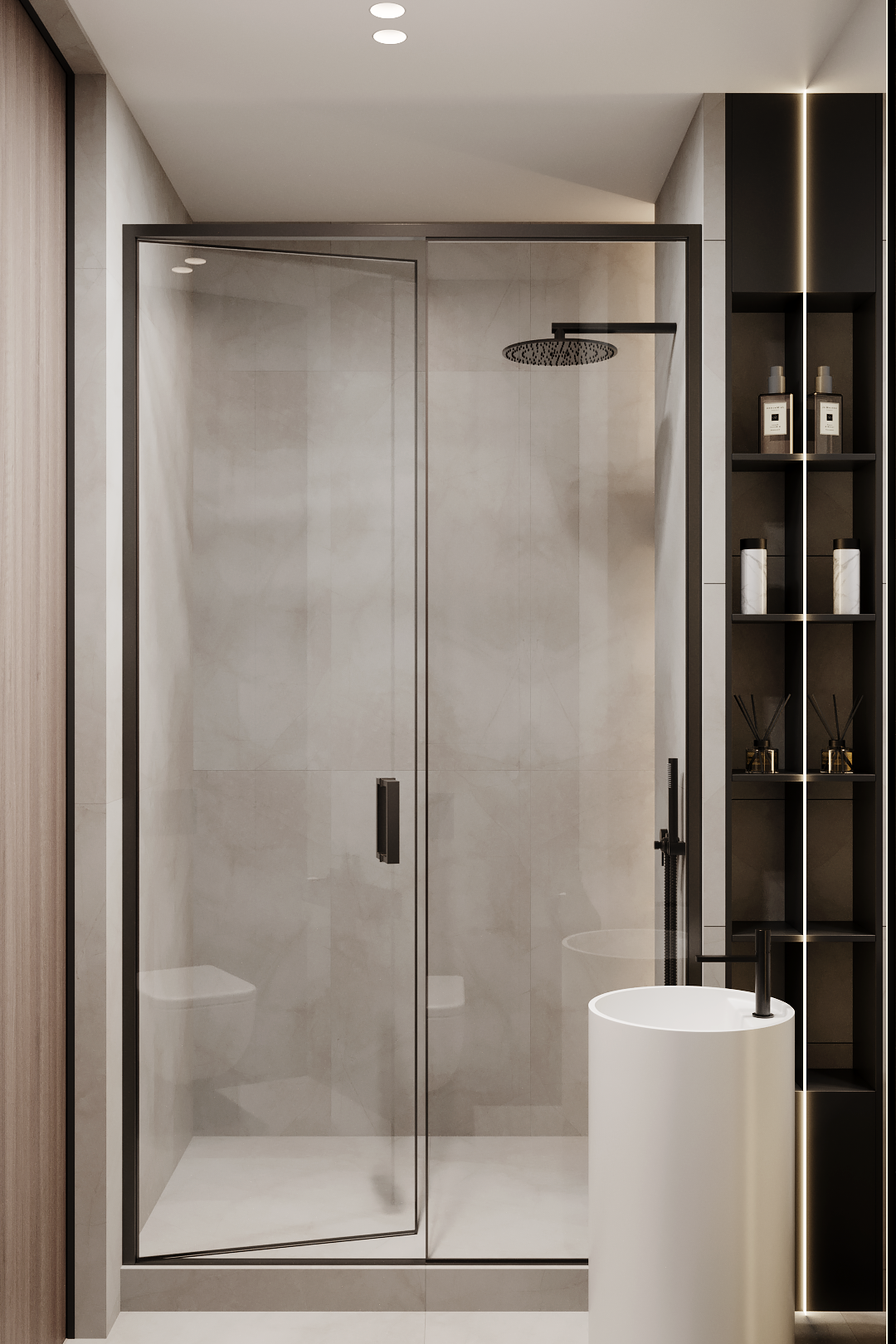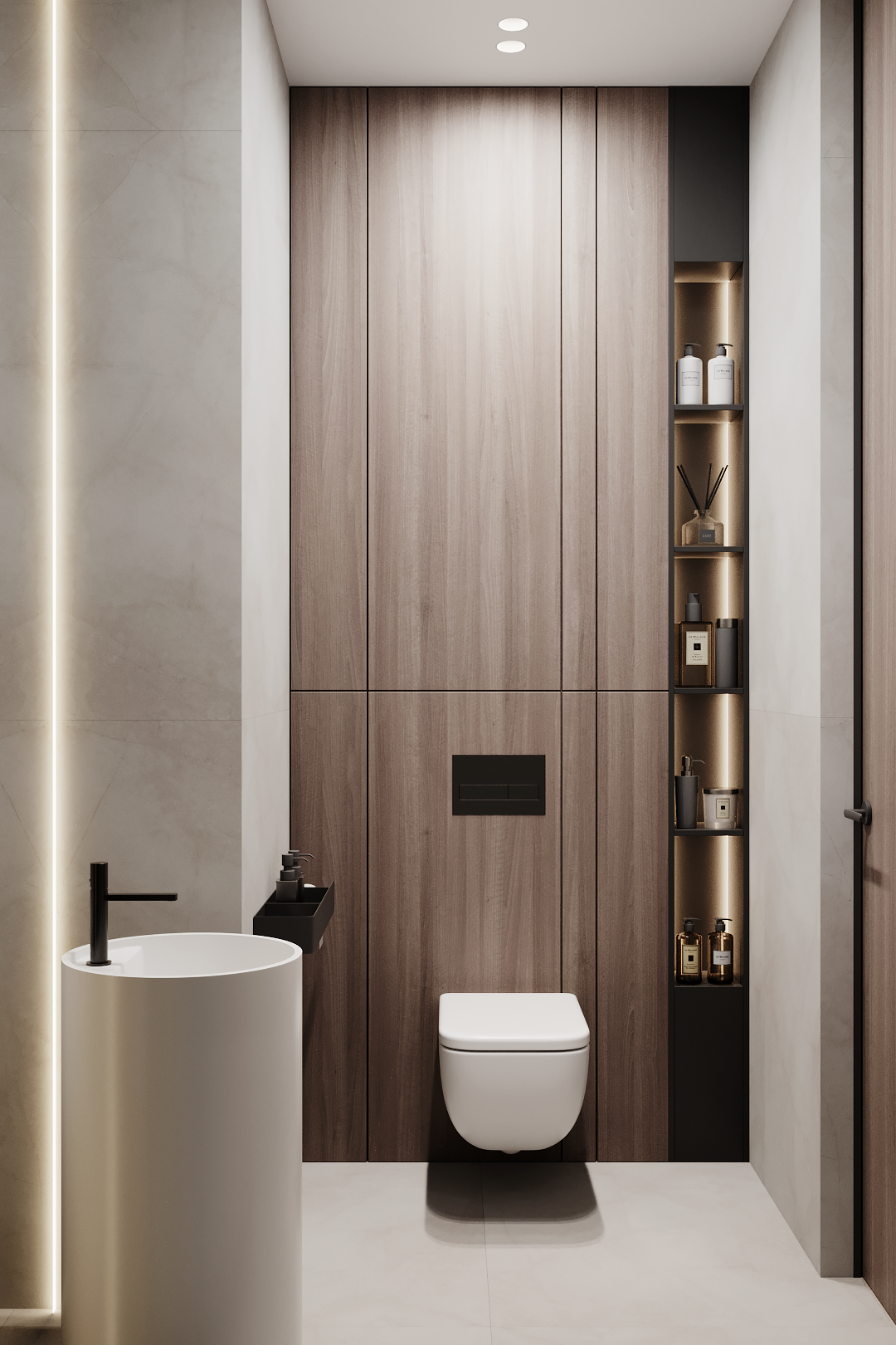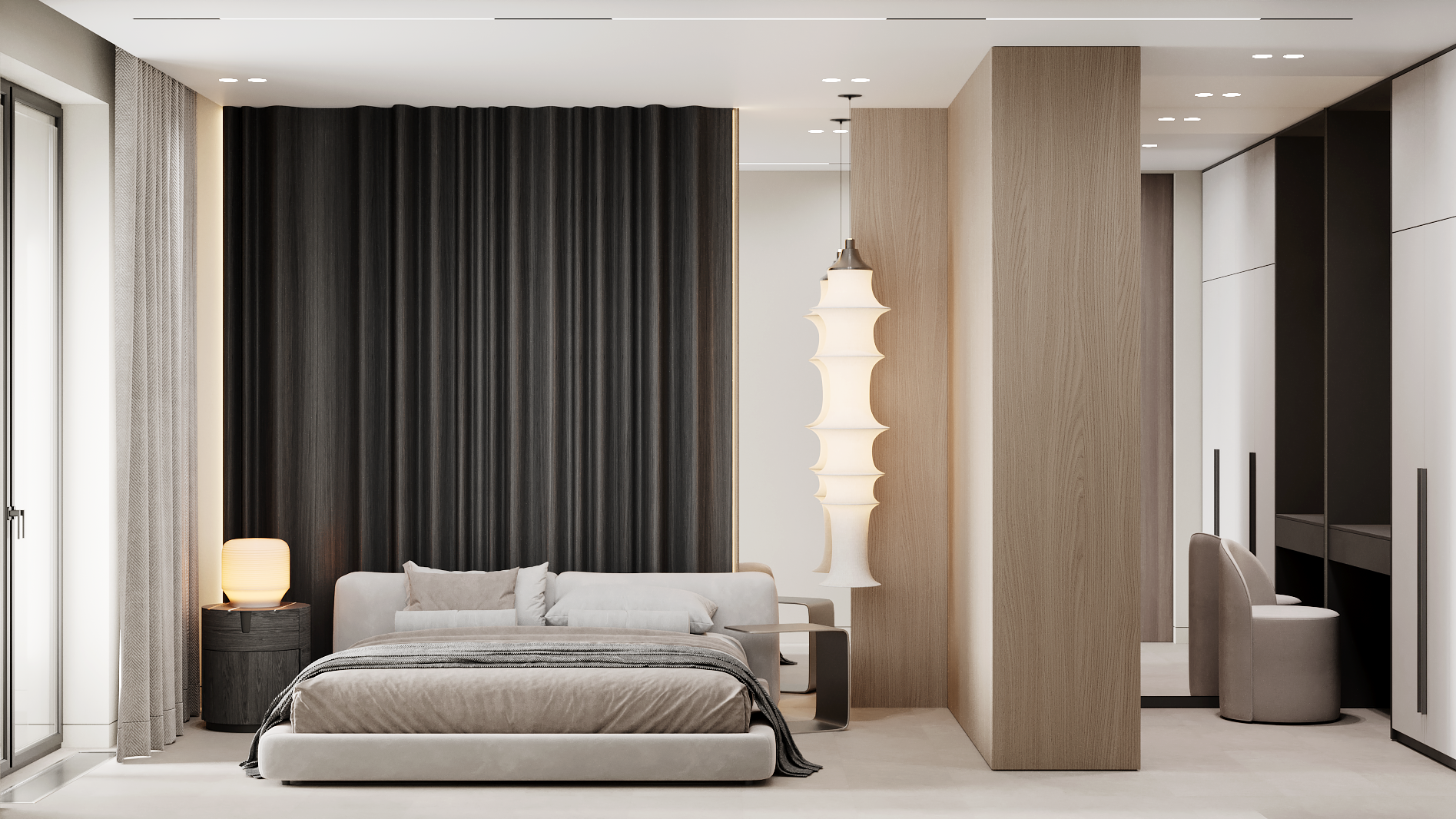 Современный минималистичный интерьер с акцентом на архитектурность решений, функциональность и монохромную цветовую гамму