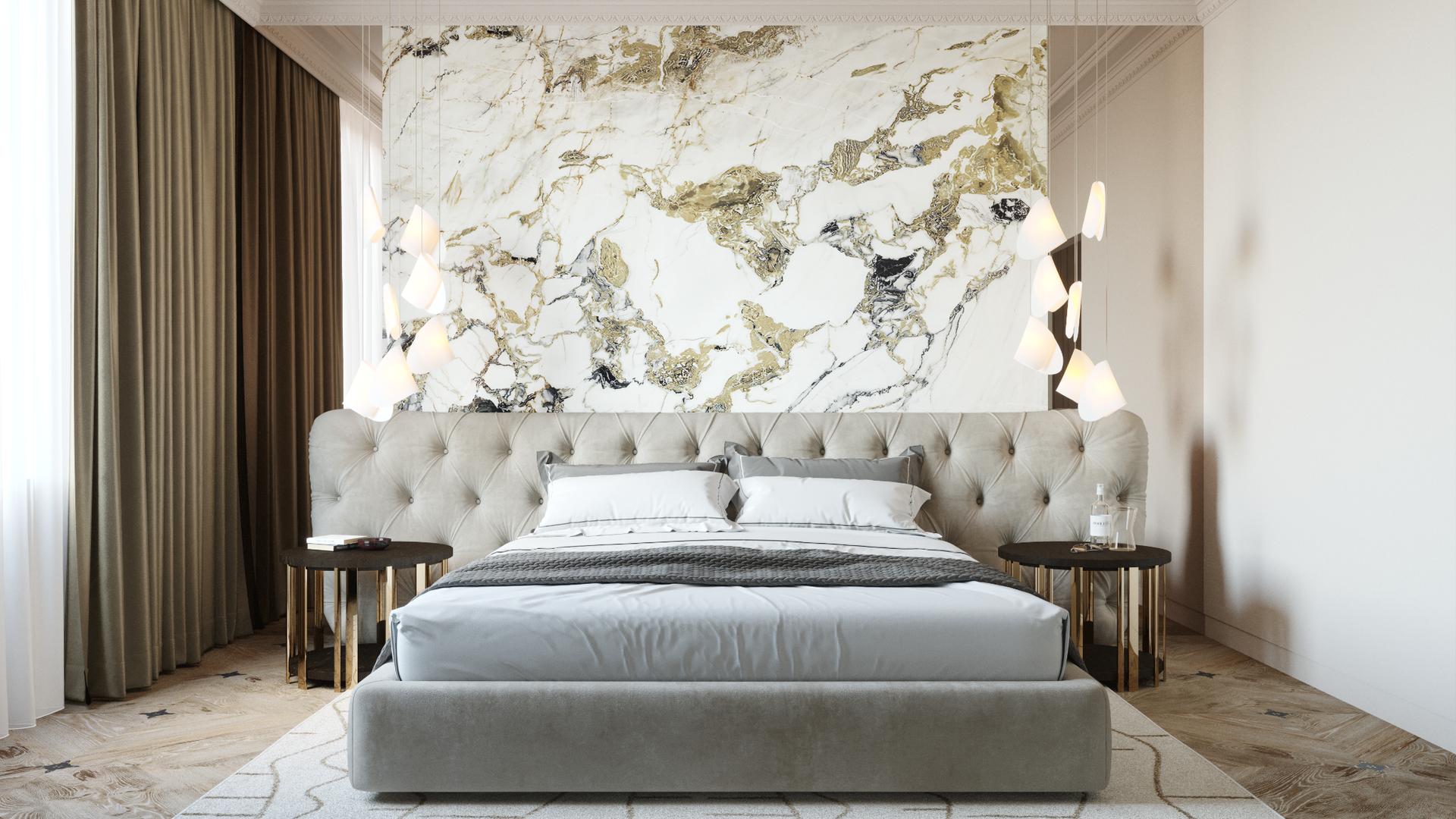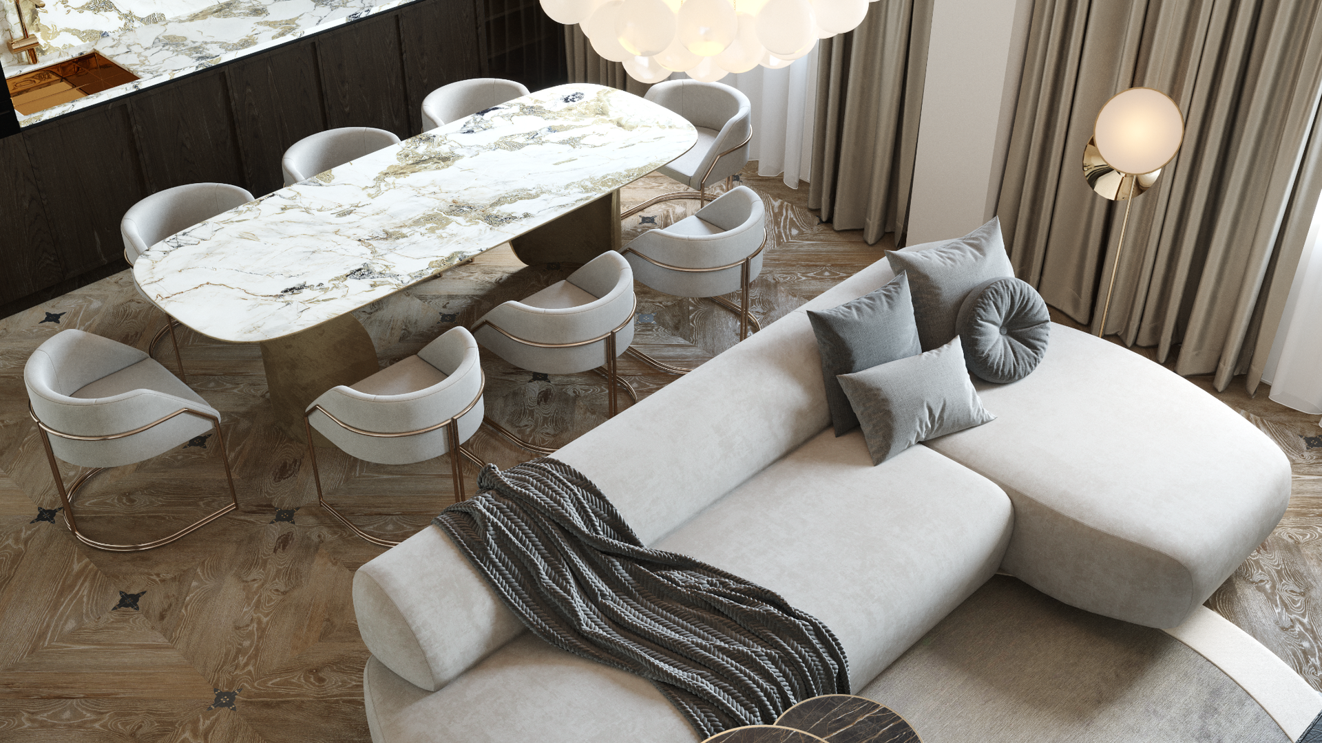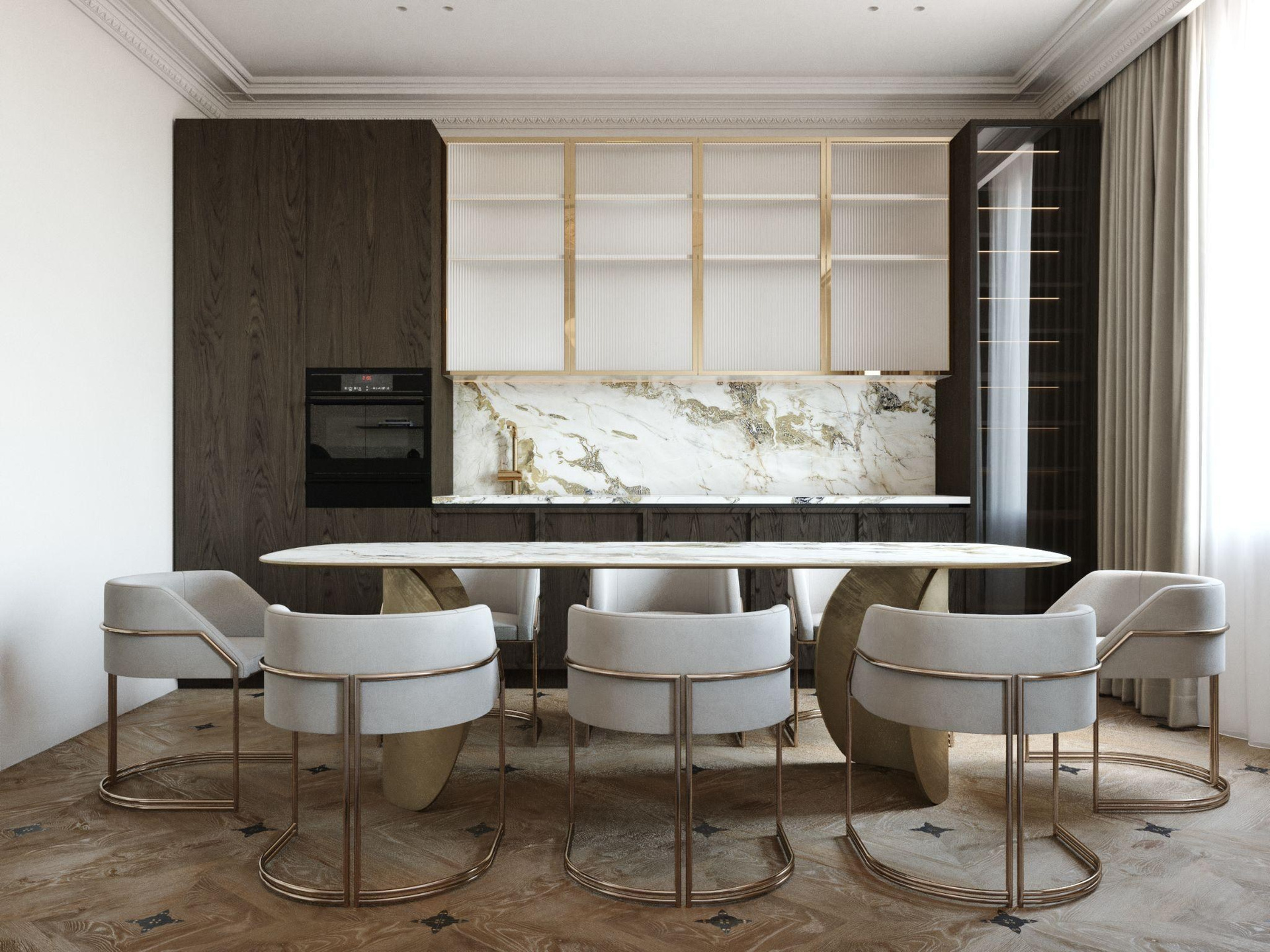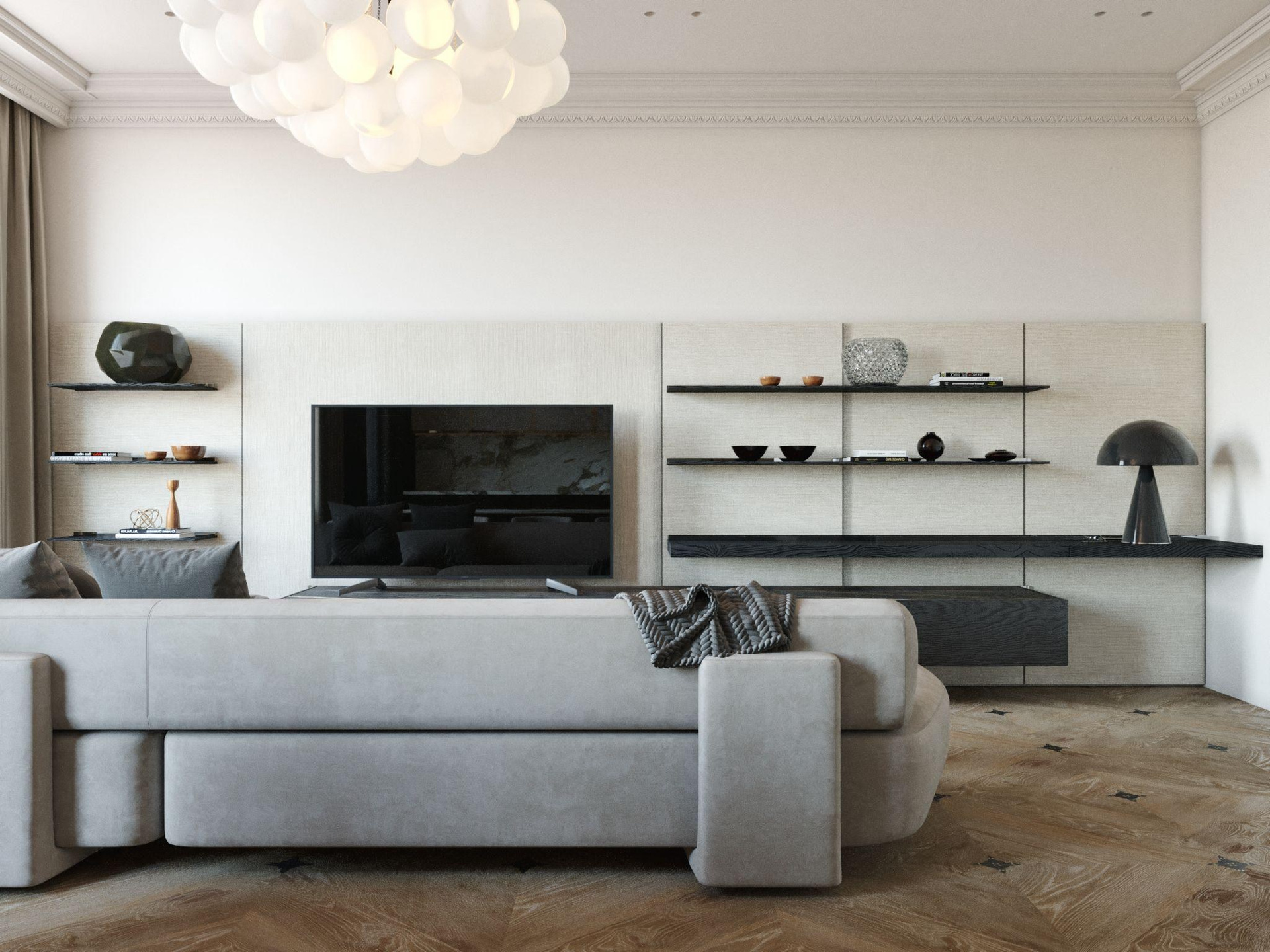Квартира сегмента премиум для состоятельной, зрелой пары в ЖК Royal Park в Санкт-Петербурге. Стилистика квартиры выполнена в строгих, сдержанных тонах, с фокусом на комфорте и высоком качестве жизни. Совмещая современную, комфортную мебель итальянских брендов, натуральный мрамор и художественный паркет с лепниной и классическими элементами декора, реализуется идея современного прочтения классического стиля и его преемственности, что так важно для людей воспитанных на культуре и ценностях Санкт-Петербурга.