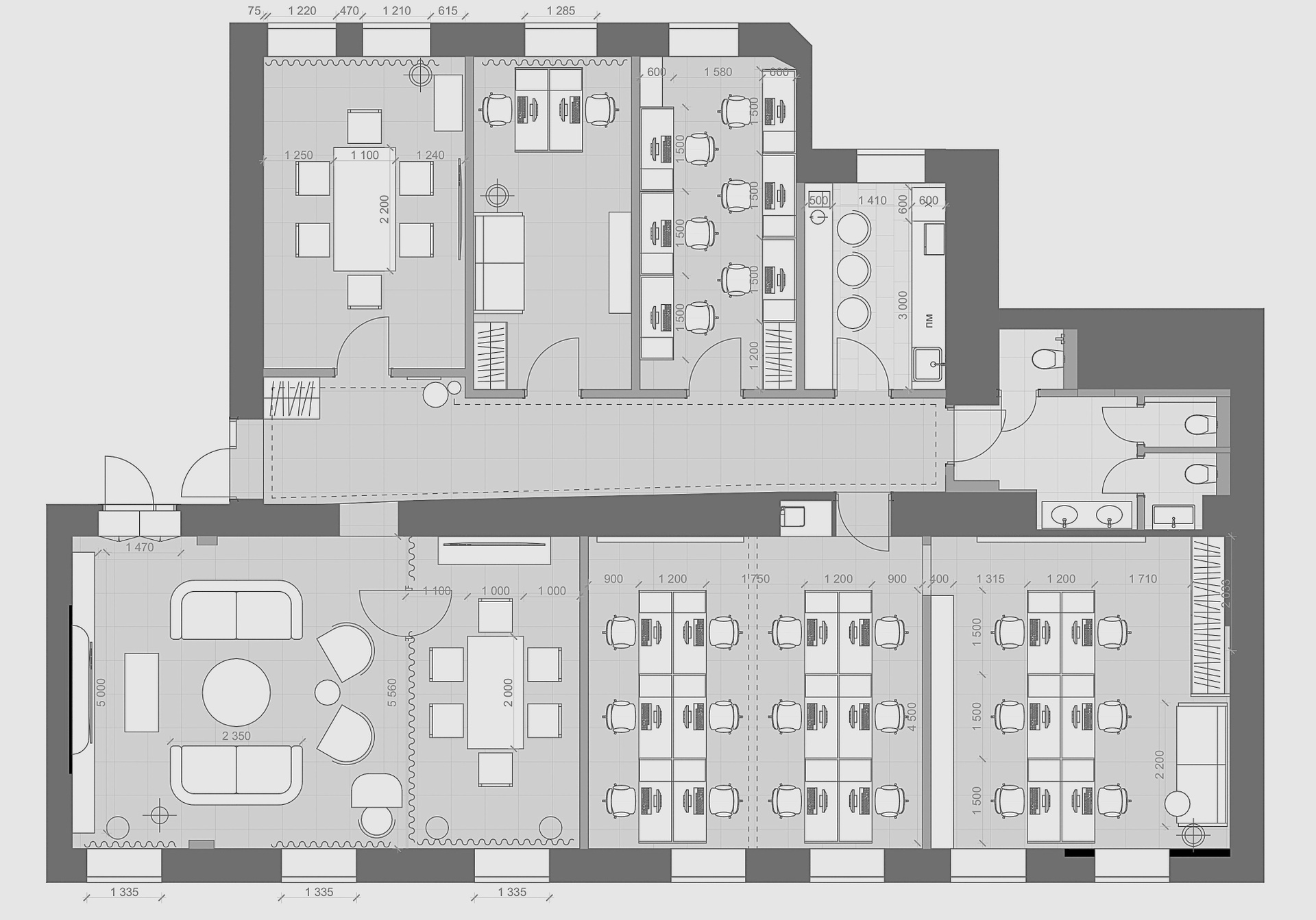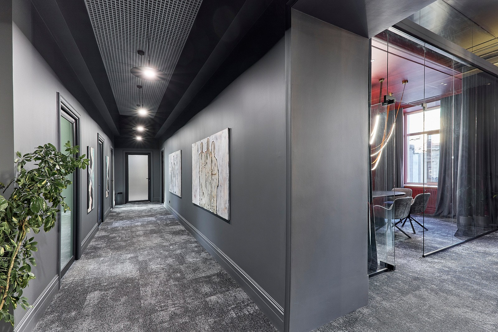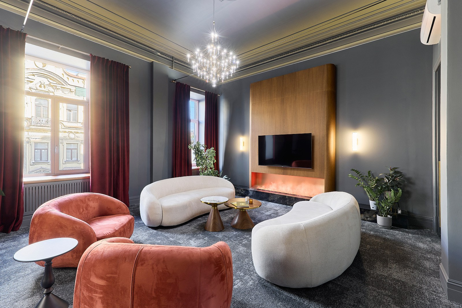 Задача заключалась в том, чтобы в короткие сроки создать стильный интерьер, способный подчеркнуть статус компании и её философию доверия. Под подвесным потолком были найдены фрагменты лепнины, которые легли в основу концепции. Их максимально сохранили, вернув пространству характер и глубину.